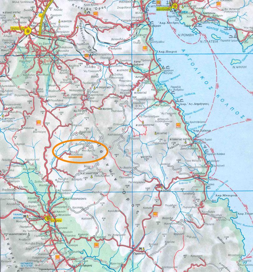 Βρέσθενα : Χάρτης και χιλιομετρικές αποστάσεις |