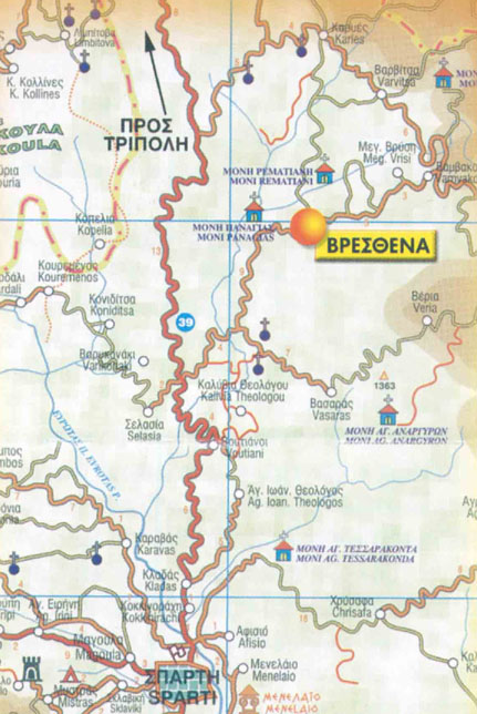 Βρέσθενα : Χάρτης και χιλιομετρικές αποστάσεις |